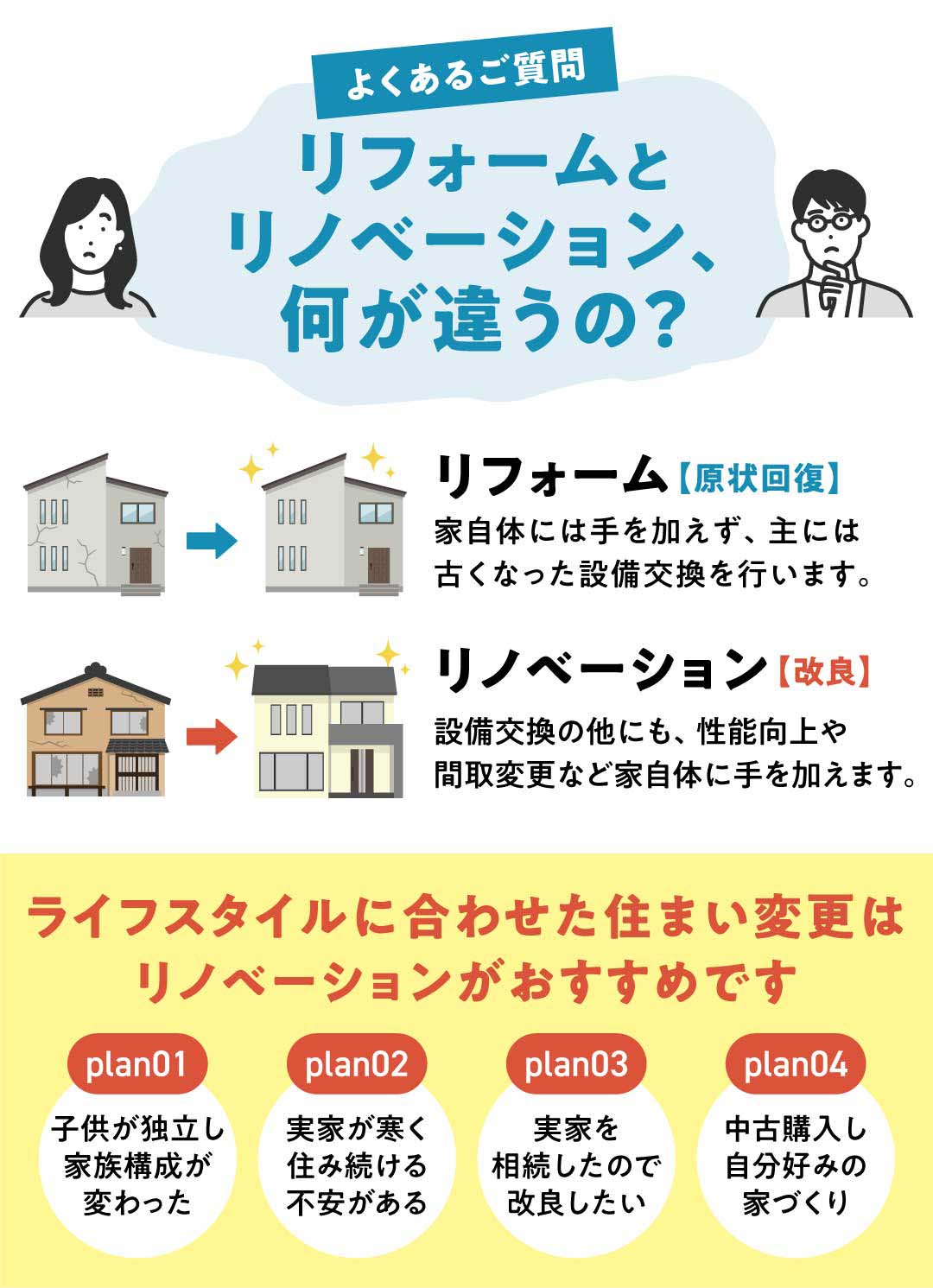 ※住みながらのリフォームは承っておりません。仮住まいをお願いしています。※築40年以上は施工対象外となりますのでご了承ください。