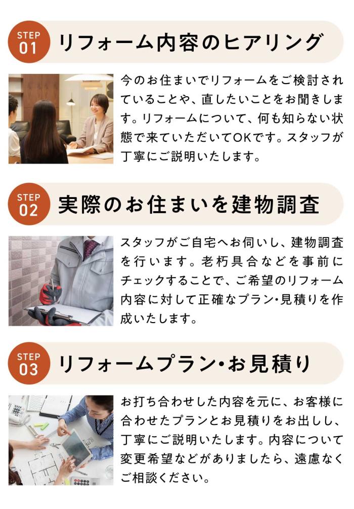 ※住みながらのリフォームは承っておりません。仮住まいをお願いしています。