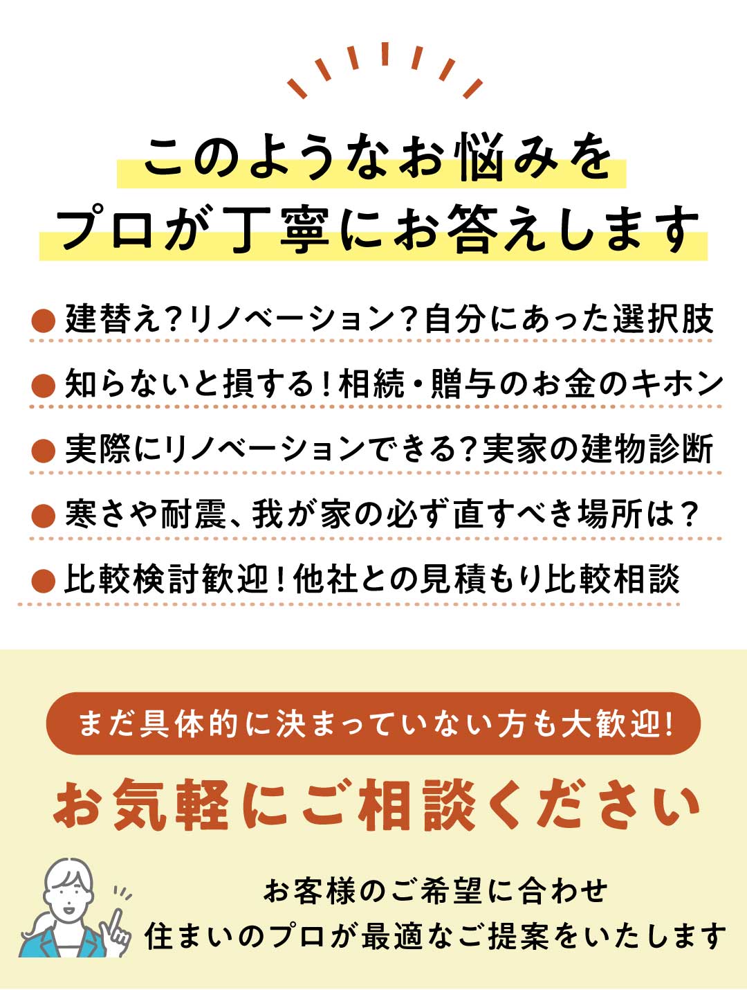 ※ ご入力いただきました情報は「個人情報保護について」に従って取り扱われます。※ 送信できない場合はお手数ですが info@j-renovation.jp までお問い合わせください。