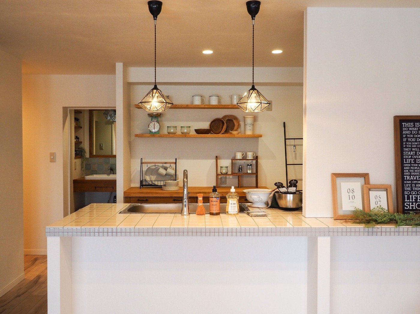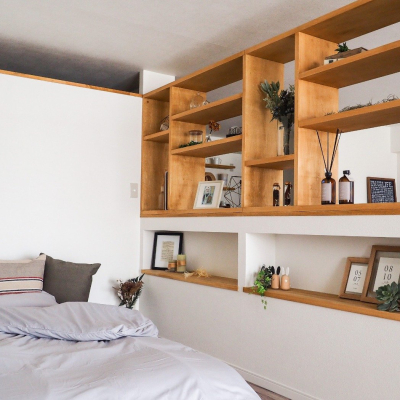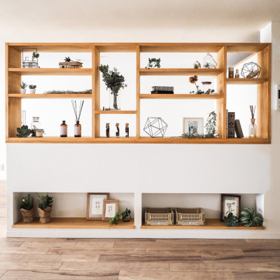 造作の飾り棚の仕切りがおしゃれ