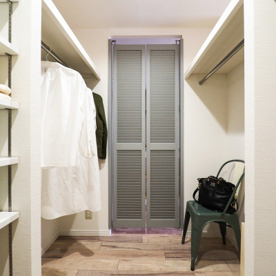 ウォークスルーのクローゼットが機能的で見た目もショップ風